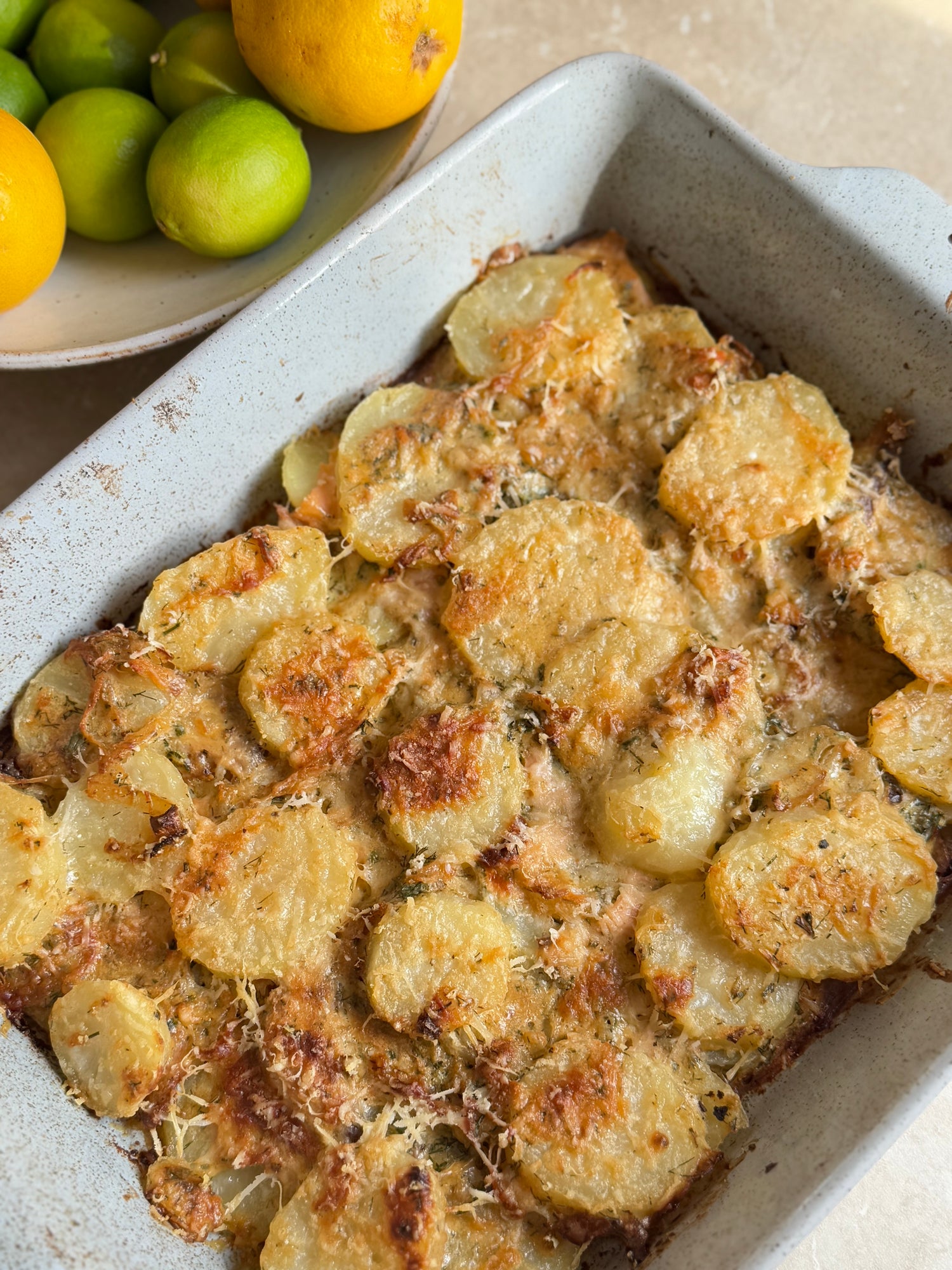 Smoked salmon, dill and cream cheese potato bake